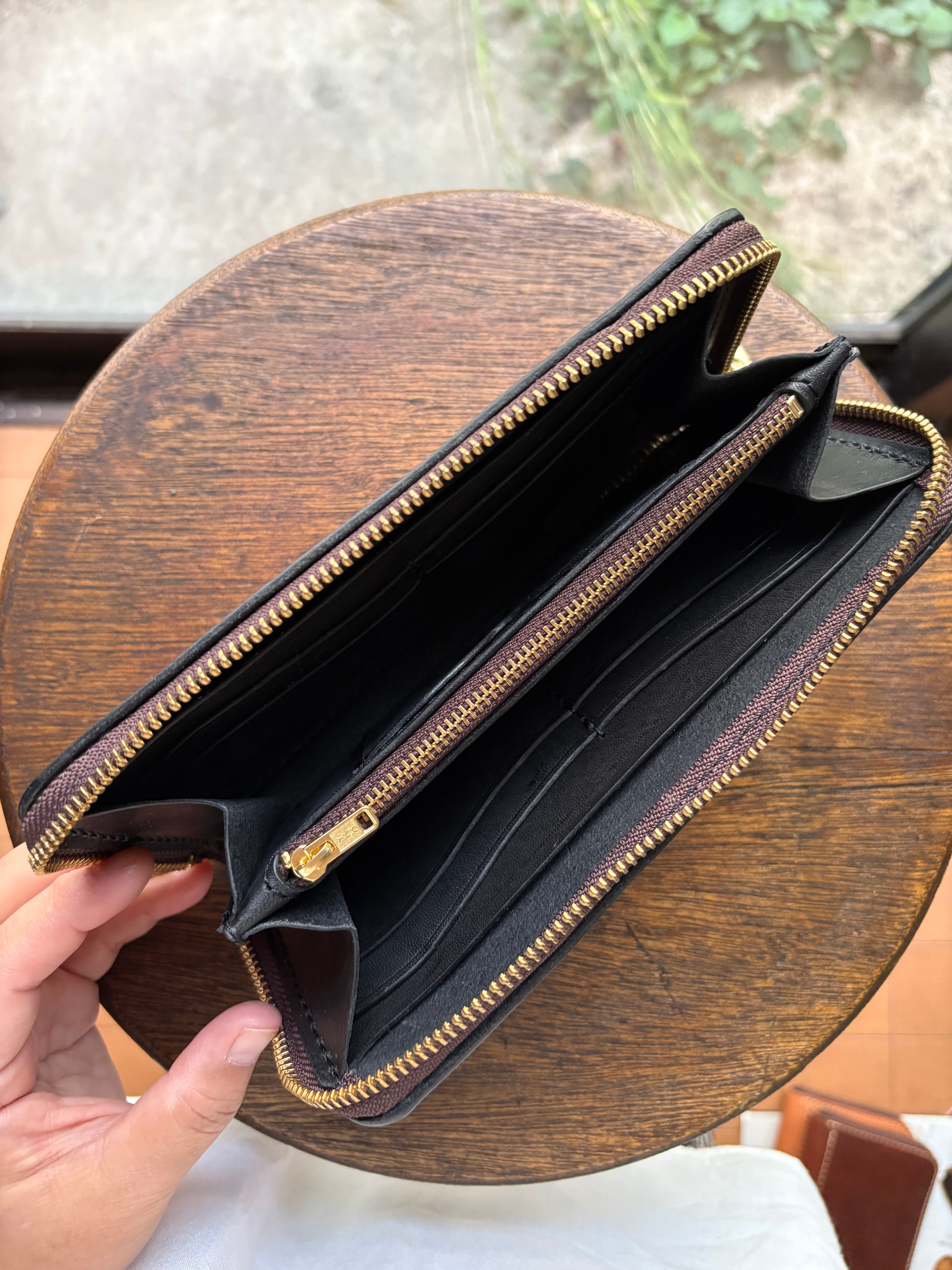 高品質なイタリアンレザーを使用した、スタイリッシュで機能的なロングウォレットです。この財布は、使うほどに柔らかさと風合いが増し、長く愛用できる一品です。